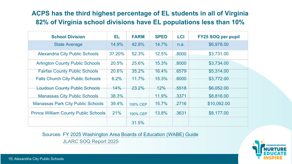 At the same time, Alexandria serves a student population with higher needs than many surrounding jurisdictions: